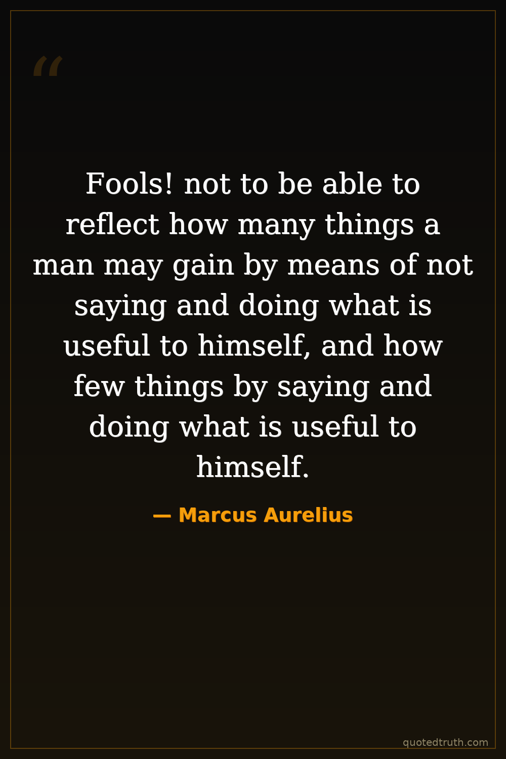 Fools! not to be able to reflect how many things a man may gain by means of not saying and doing what is useful to himself, and how few things by saying and doing what is useful to himself.