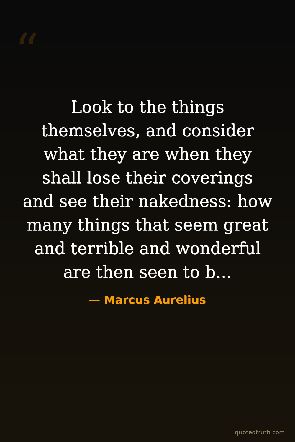 Look to the things themselves, and consider what they are when they shall lose their coverings and see their nakedness: how many things that seem great and terrible and wonderful are then seen to be of no account.