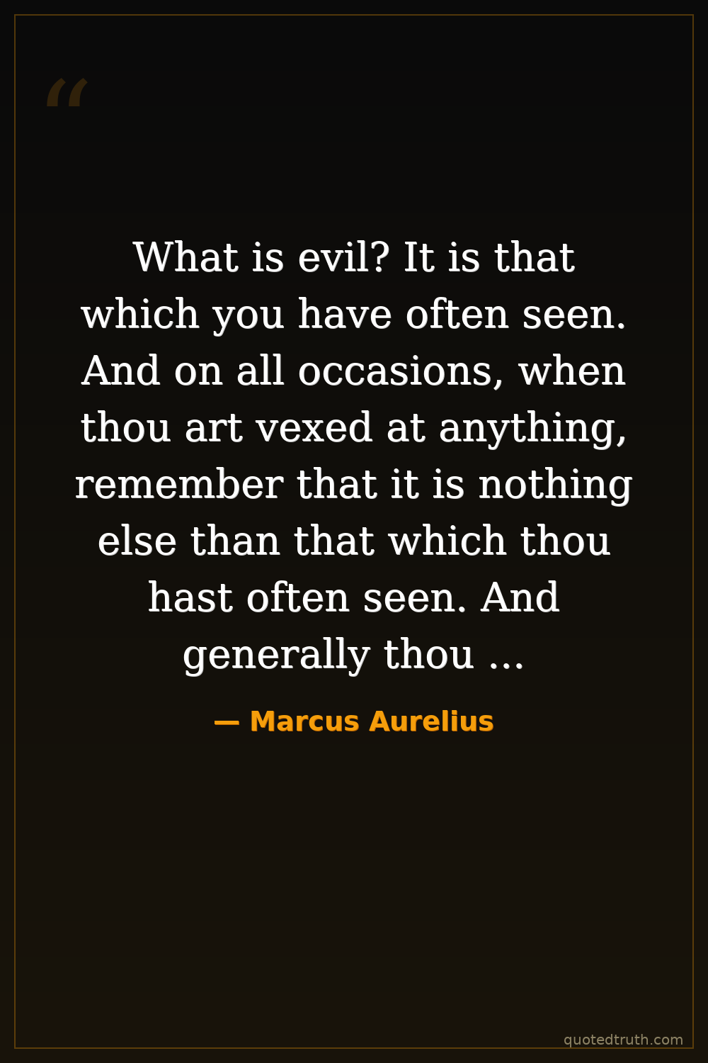 What is evil? It is that which you have often seen. And on all occasions, when thou art vexed at anything, remember that it is nothing else than that which thou hast often seen. And generally thou wilt find that the human life is a repetition of the same things, and that there is nothing new under the sun.