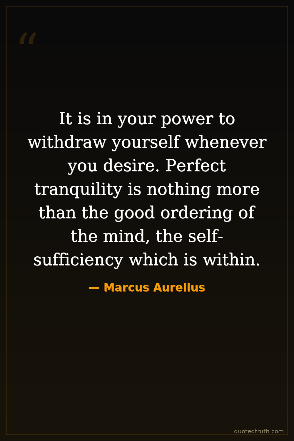 It is in your power to withdraw yourself whenever you desire. Perfect tranquility is nothing more than the good ordering of the mind, the self-sufficiency which is within.