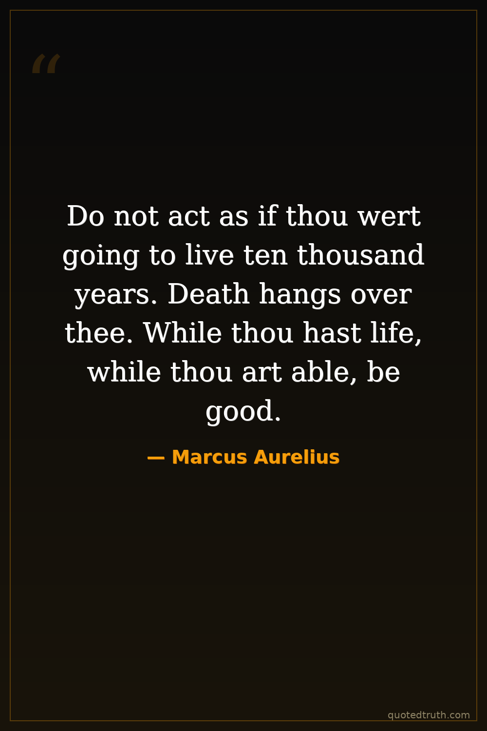 Do not act as if thou wert going to live ten thousand years. Death hangs over thee. While thou hast life, while thou art able, be good.