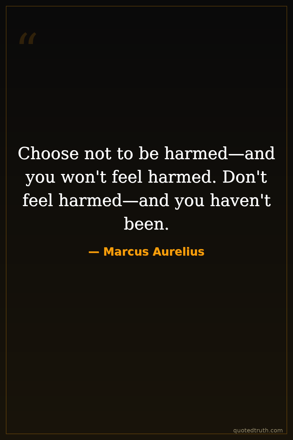 Choose not to be harmed—and you won't feel harmed. Don't feel harmed—and you haven't been.