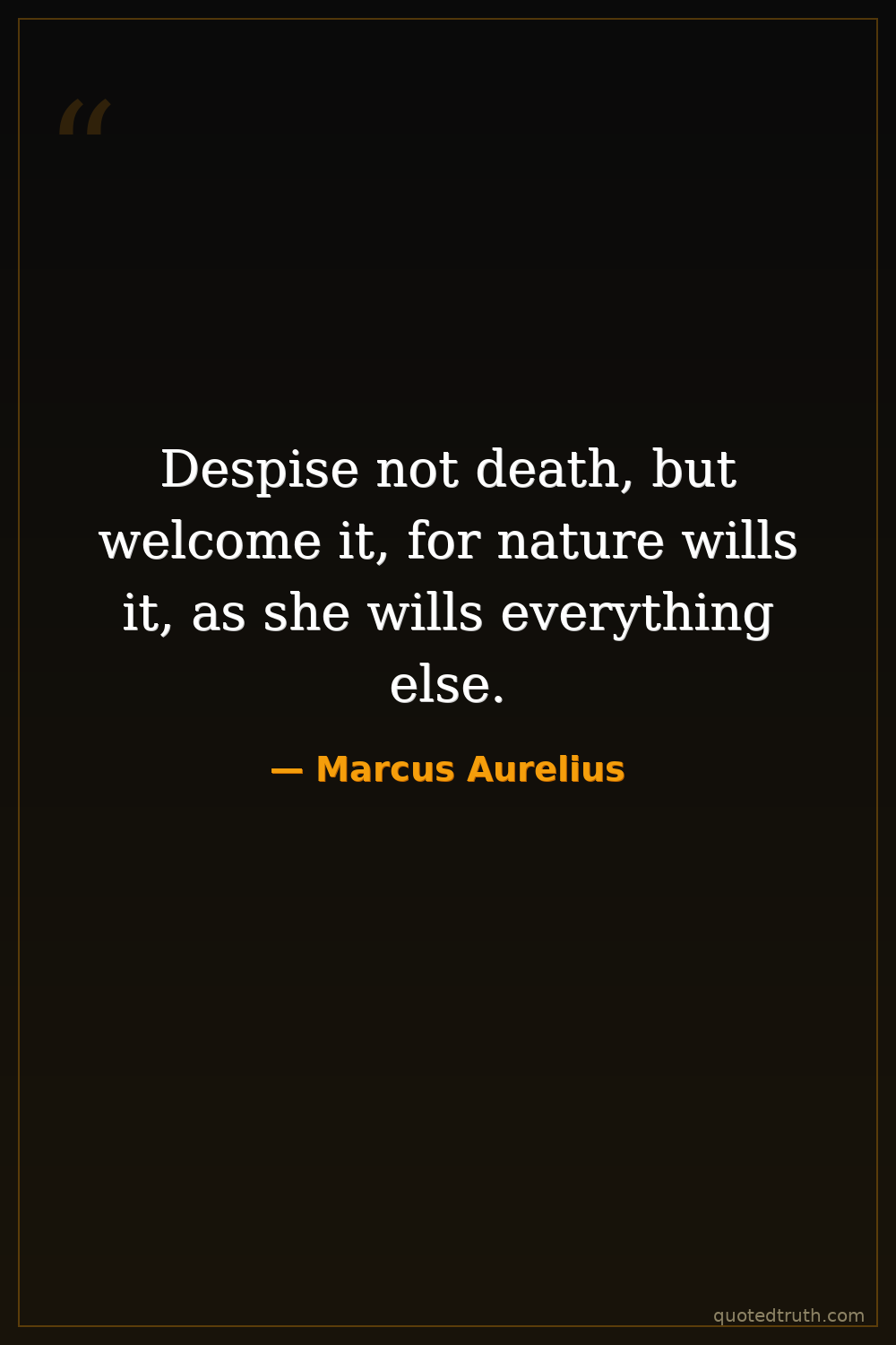 Despise not death, but welcome it, for nature wills it, as she wills everything else.