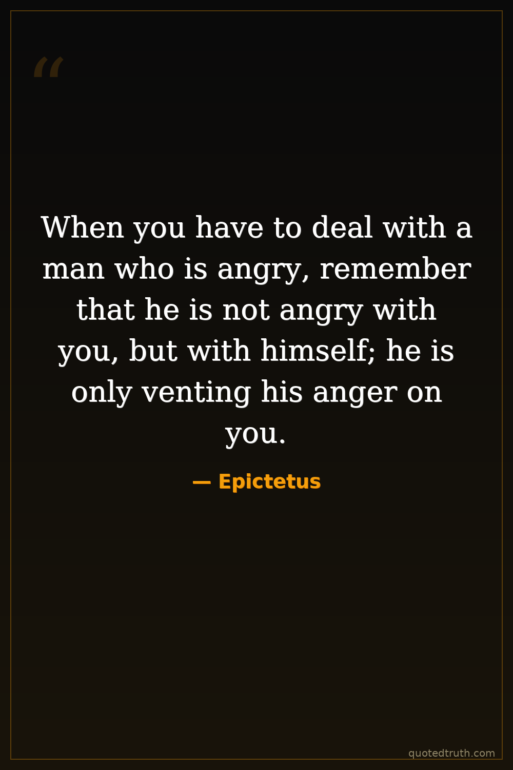When you have to deal with a man who is angry, remember that he is not angry with you, but with himself; he is only venting his anger on you.