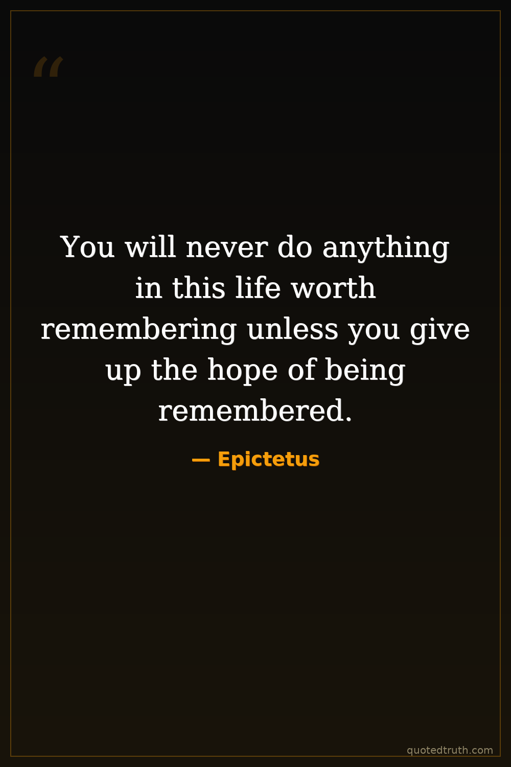 You will never do anything in this life worth remembering unless you give up the hope of being remembered.