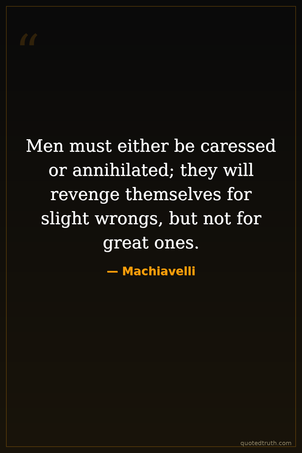 Men must either be caressed or annihilated; they will revenge themselves for slight wrongs, but not for great ones.