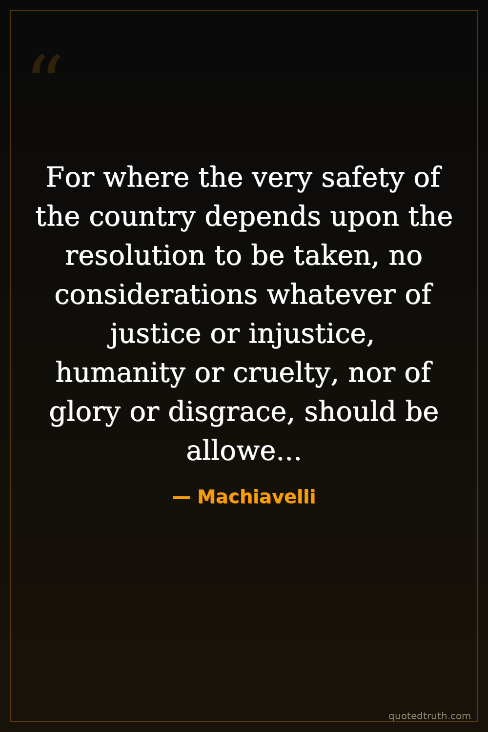 For where the very safety of the country depends upon the resolution to be taken, no considerations whatever of justice or injustice, humanity or cruelty, nor of glory or disgrace, should be allowed to prevail. But putting all other considerations aside, the only question should be, what course will save the life and liberty of the country.