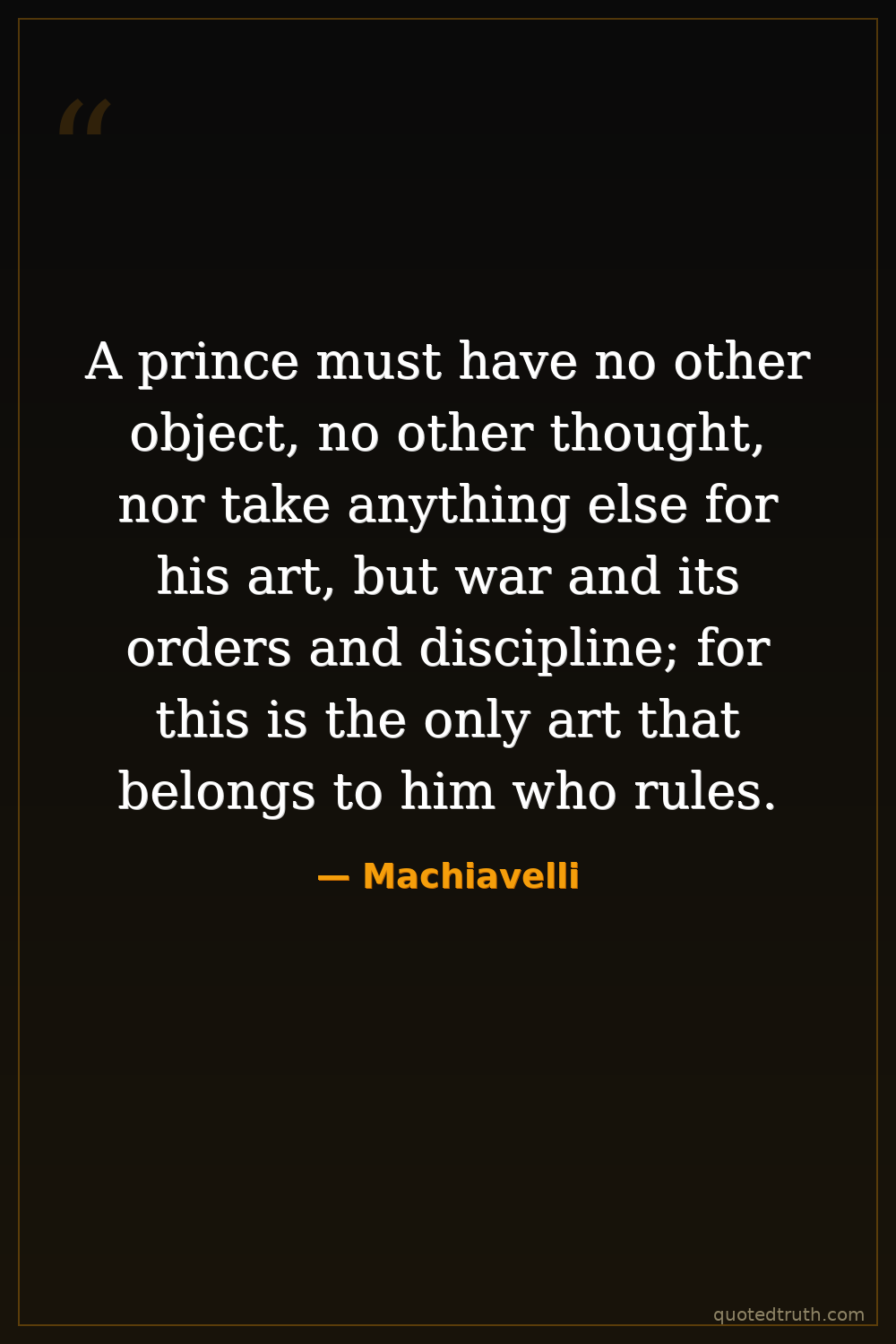 A prince must have no other object, no other thought, nor take anything else for his art, but war and its orders and discipline; for this is the only art that belongs to him who rules.