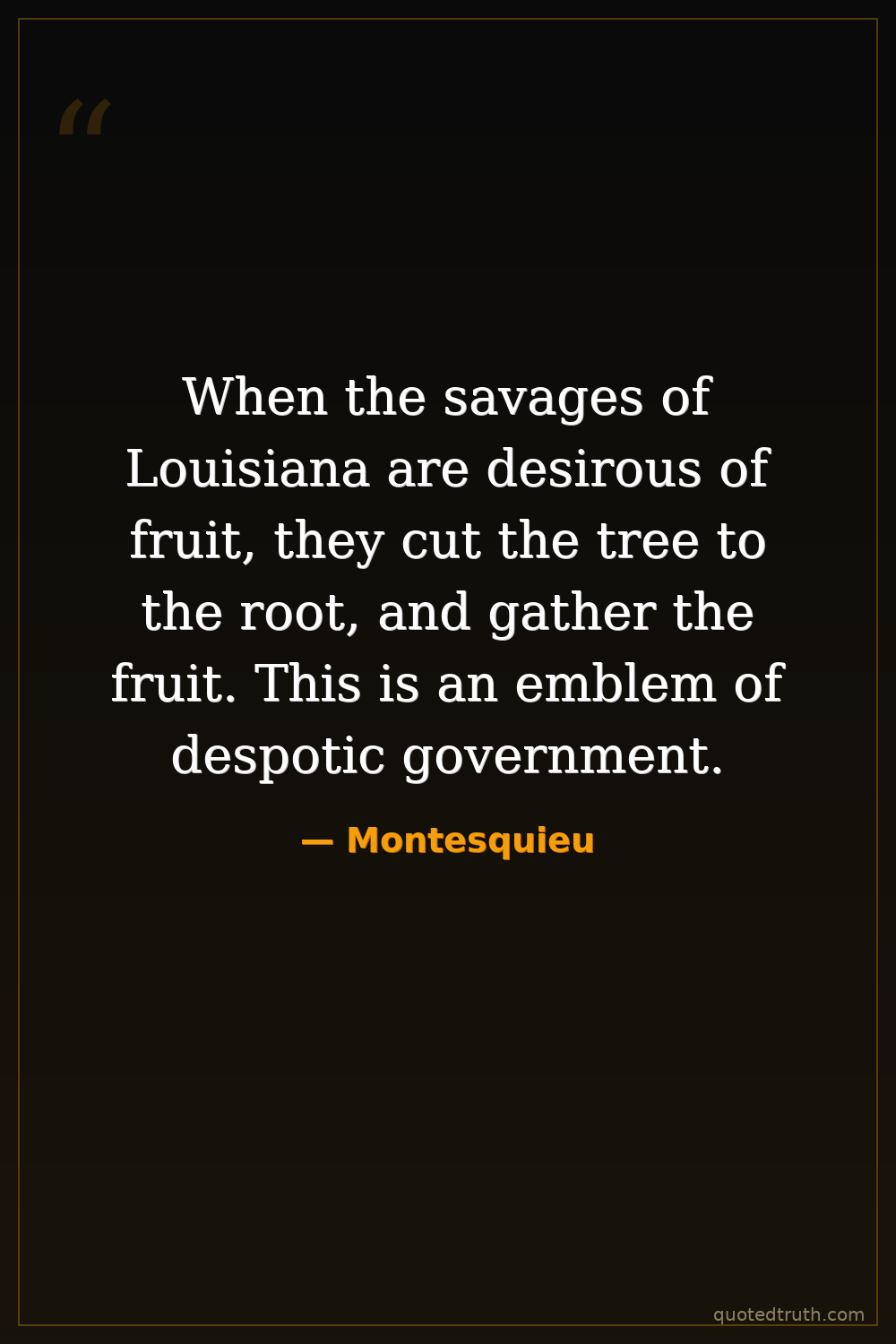 When the savages of Louisiana are desirous of fruit, they cut the tree to the root, and gather the fruit. This is an emblem of despotic government.