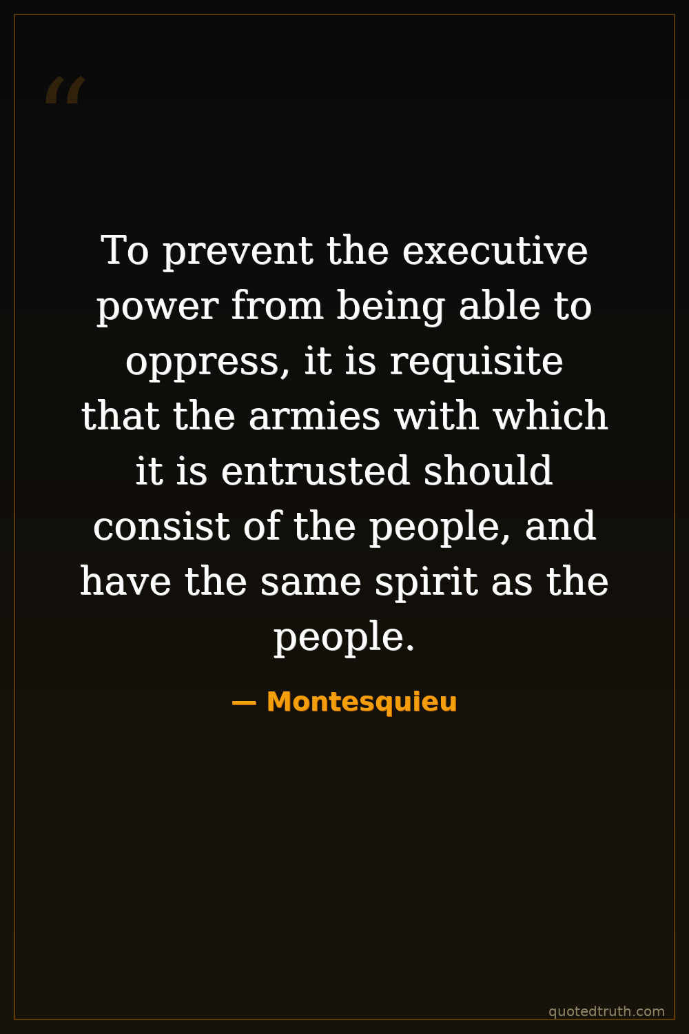 To prevent the executive power from being able to oppress, it is requisite that the armies with which it is entrusted should consist of the people, and have the same spirit as the people.