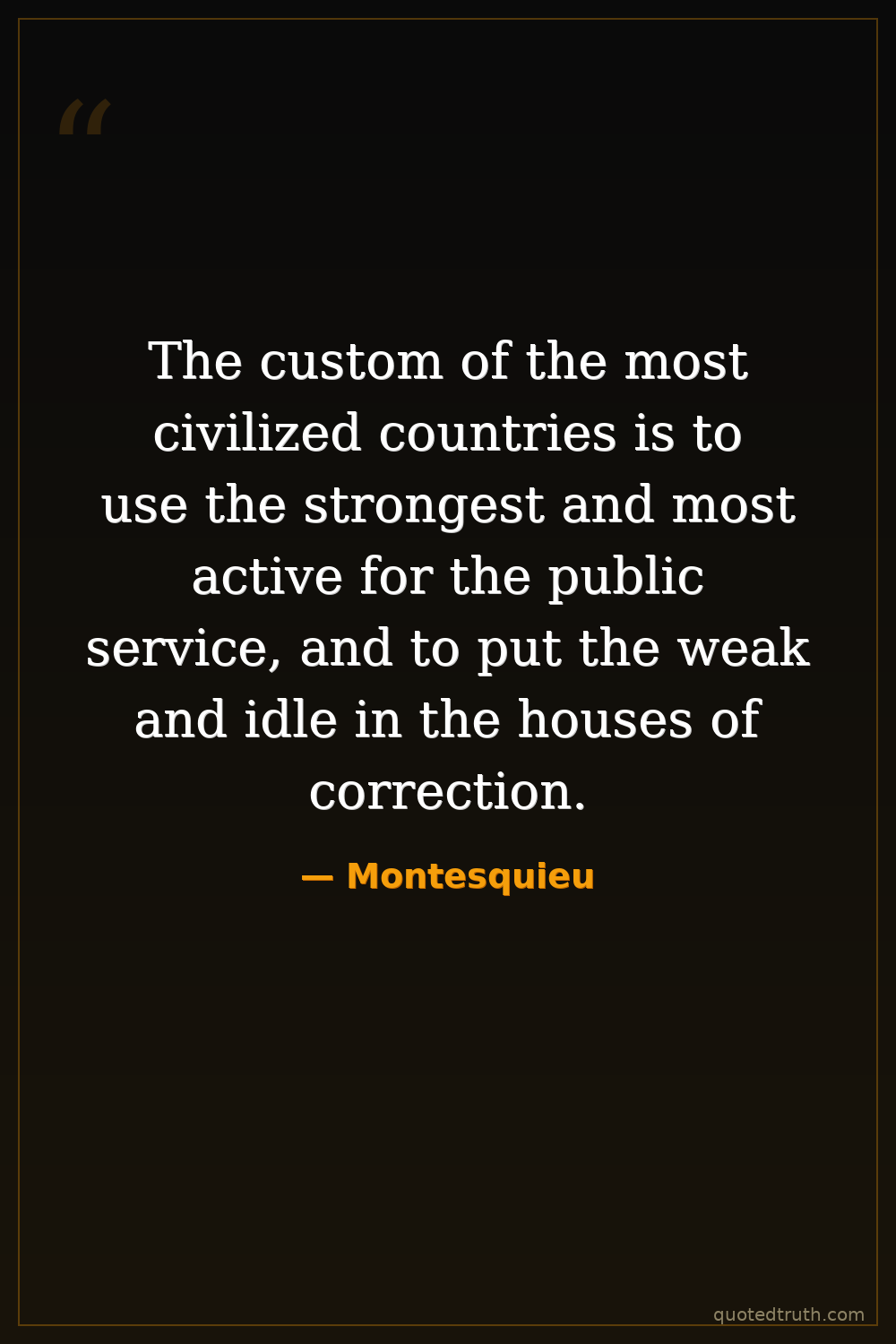 The custom of the most civilized countries is to use the strongest and most active for the public service, and to put the weak and idle in the houses of correction.