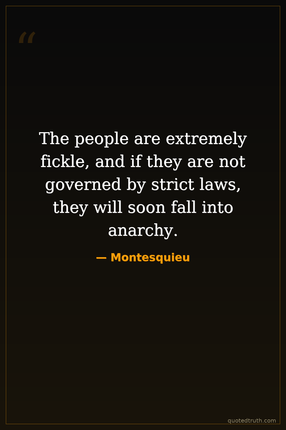 The people are extremely fickle, and if they are not governed by strict laws, they will soon fall into anarchy.