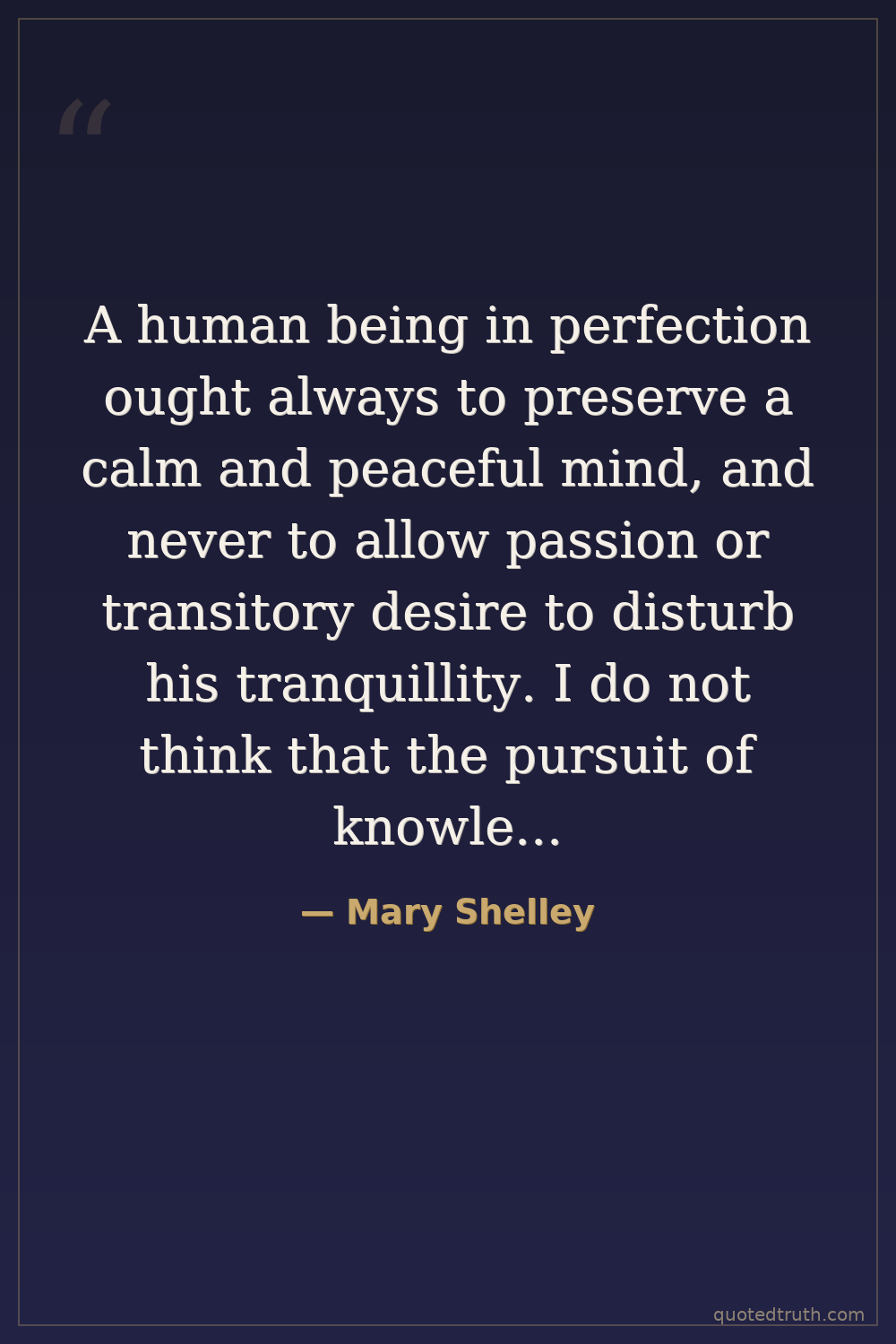 A human being in perfection ought always to preserve a calm and peaceful mind, and never to allow passion or transitory desire to disturb his tranquillity. I do not think that the pursuit of knowledge is an exception to this rule. If the study to which you apply yourself has a tendency to weaken your affections, and to destroy your taste for those simple pleasures which no alloy can possibly mix, then that study is certainly unlawful, that is to say, not befitting the human mind.