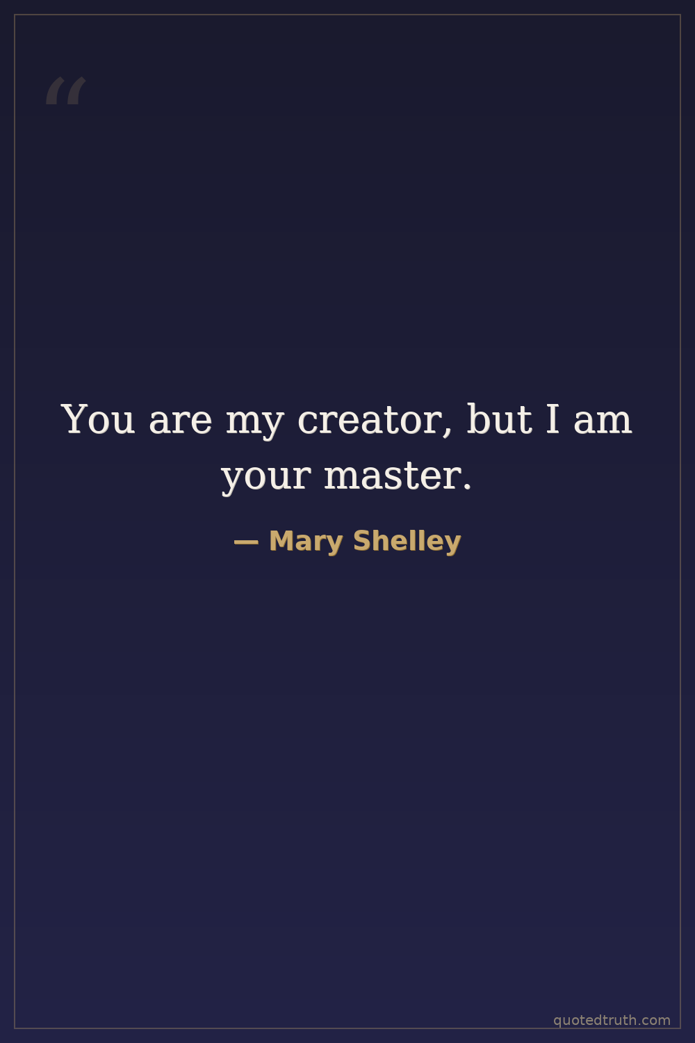 Frankenstein, spoken by the Creature, a powerful statement of reversed dominance and consequence.