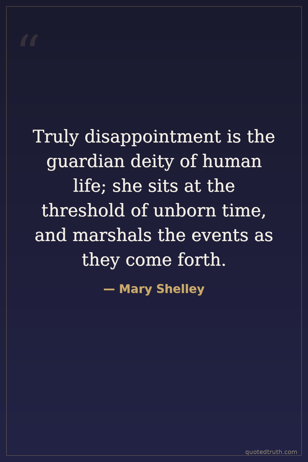 Truly disappointment is the guardian deity of human life; she sits at the threshold of unborn time, and marshals the events as they come forth.