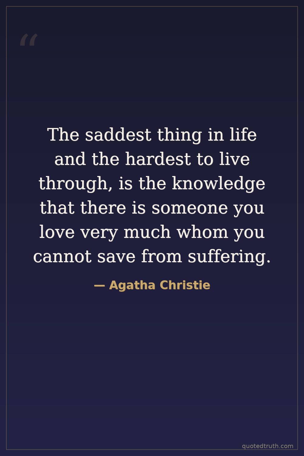 The saddest thing in life and the hardest to live through, is the knowledge that there is someone you love very much whom you cannot save from suffering.
