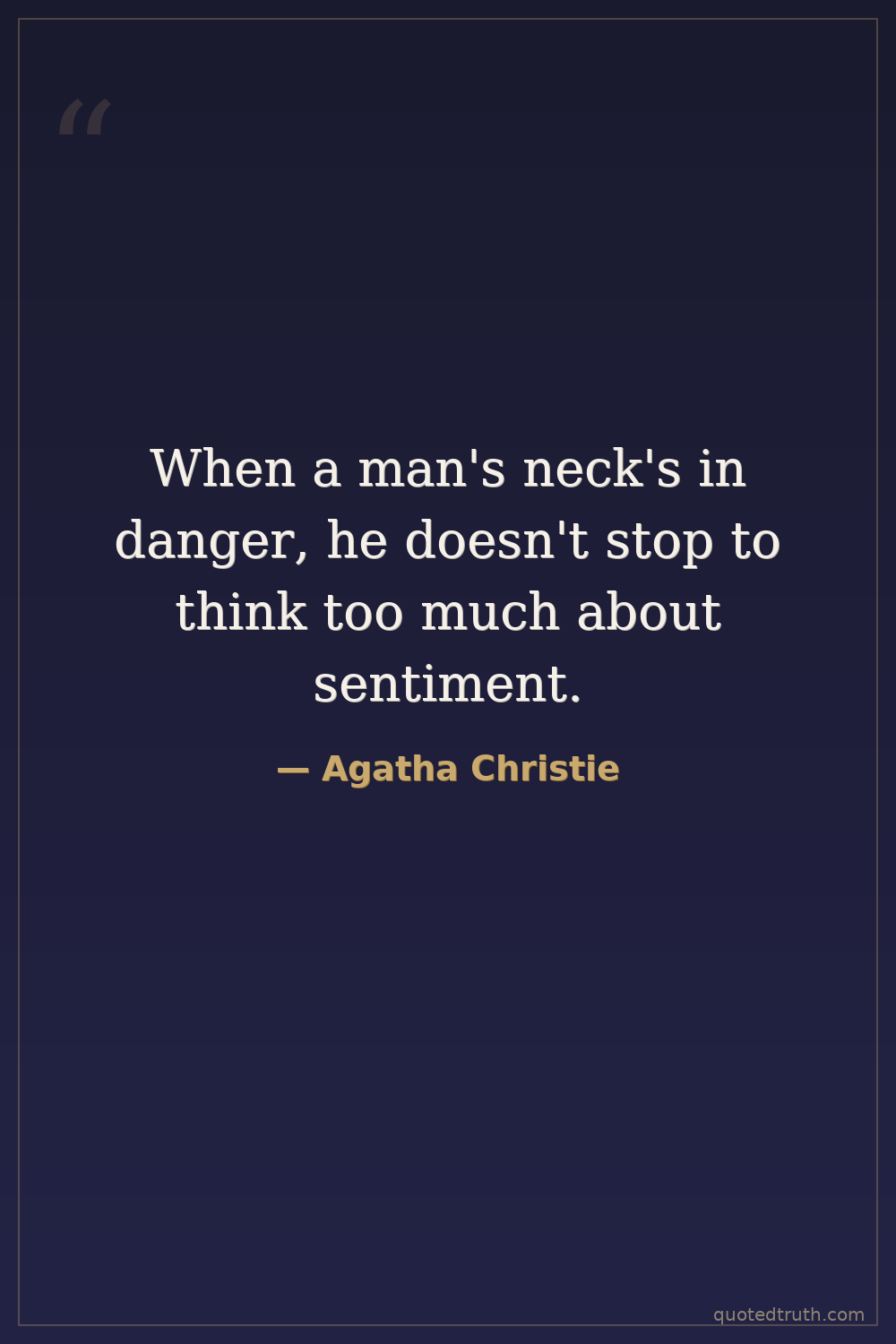 When a man's neck's in danger, he doesn't stop to think too much about sentiment.