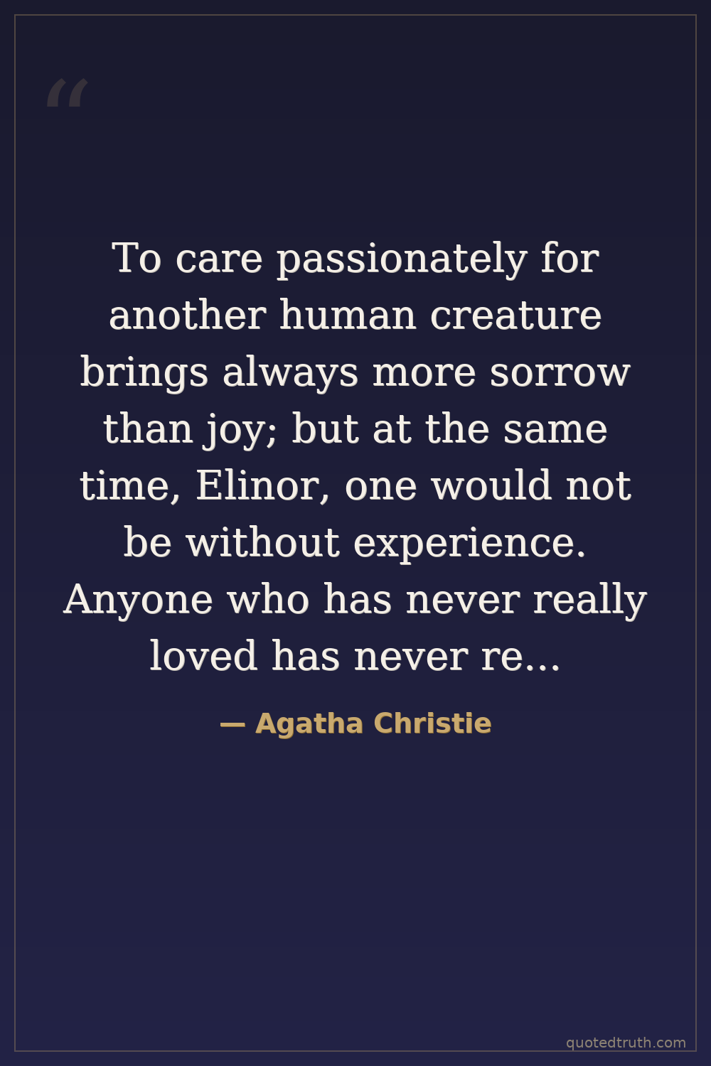 To care passionately for another human creature brings always more sorrow than joy; but at the same time, Elinor, one would not be without experience. Anyone who has never really loved has never really lived.