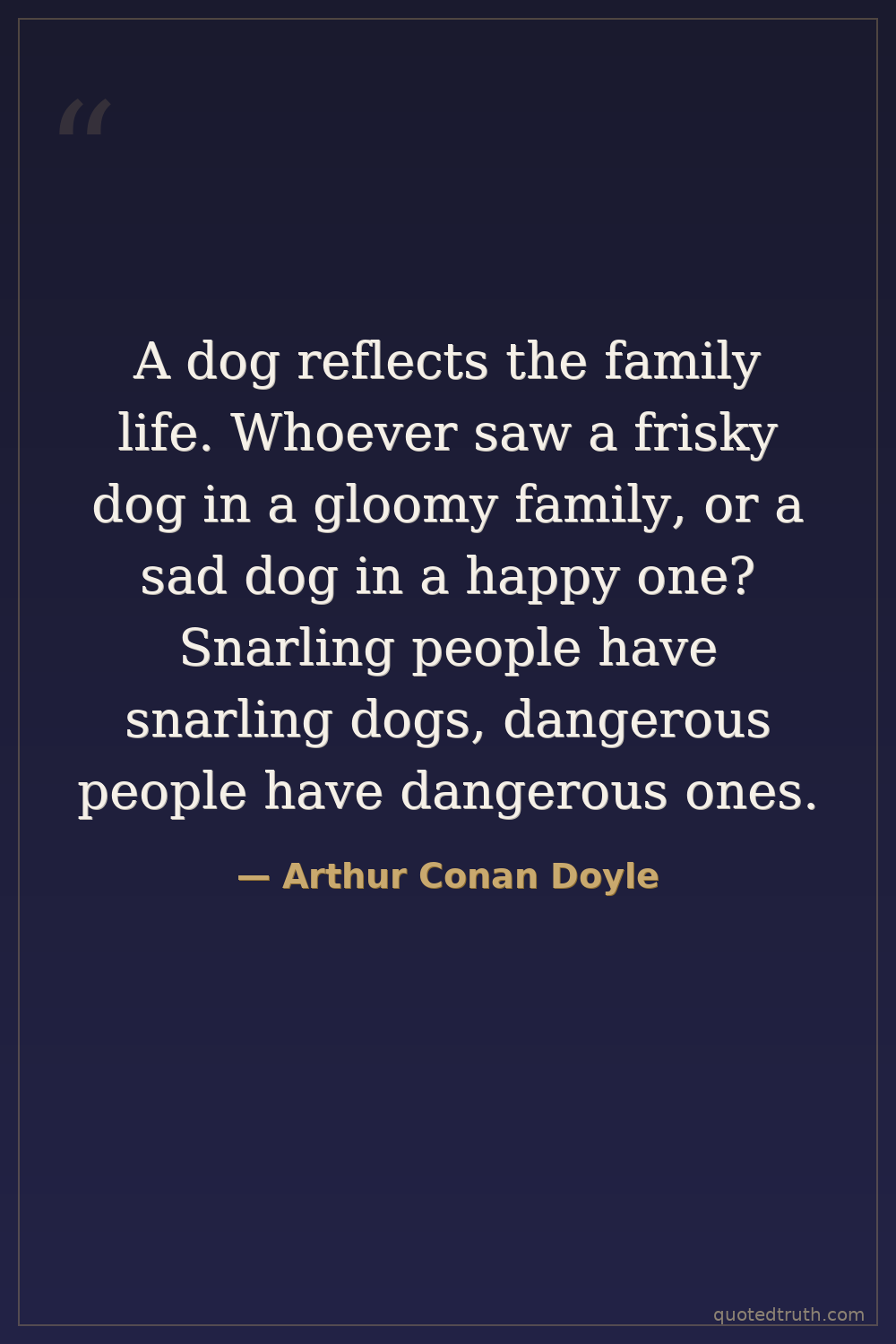 A dog reflects the family life. Whoever saw a frisky dog in a gloomy family, or a sad dog in a happy one? Snarling people have snarling dogs, dangerous people have dangerous ones.