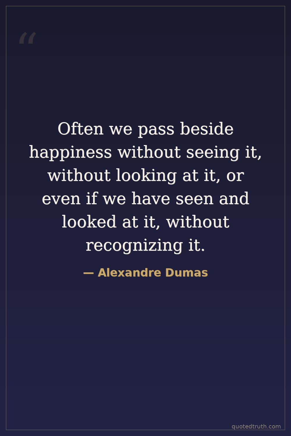 Often we pass beside happiness without seeing it, without looking at it, or even if we have seen and looked at it, without recognizing it.