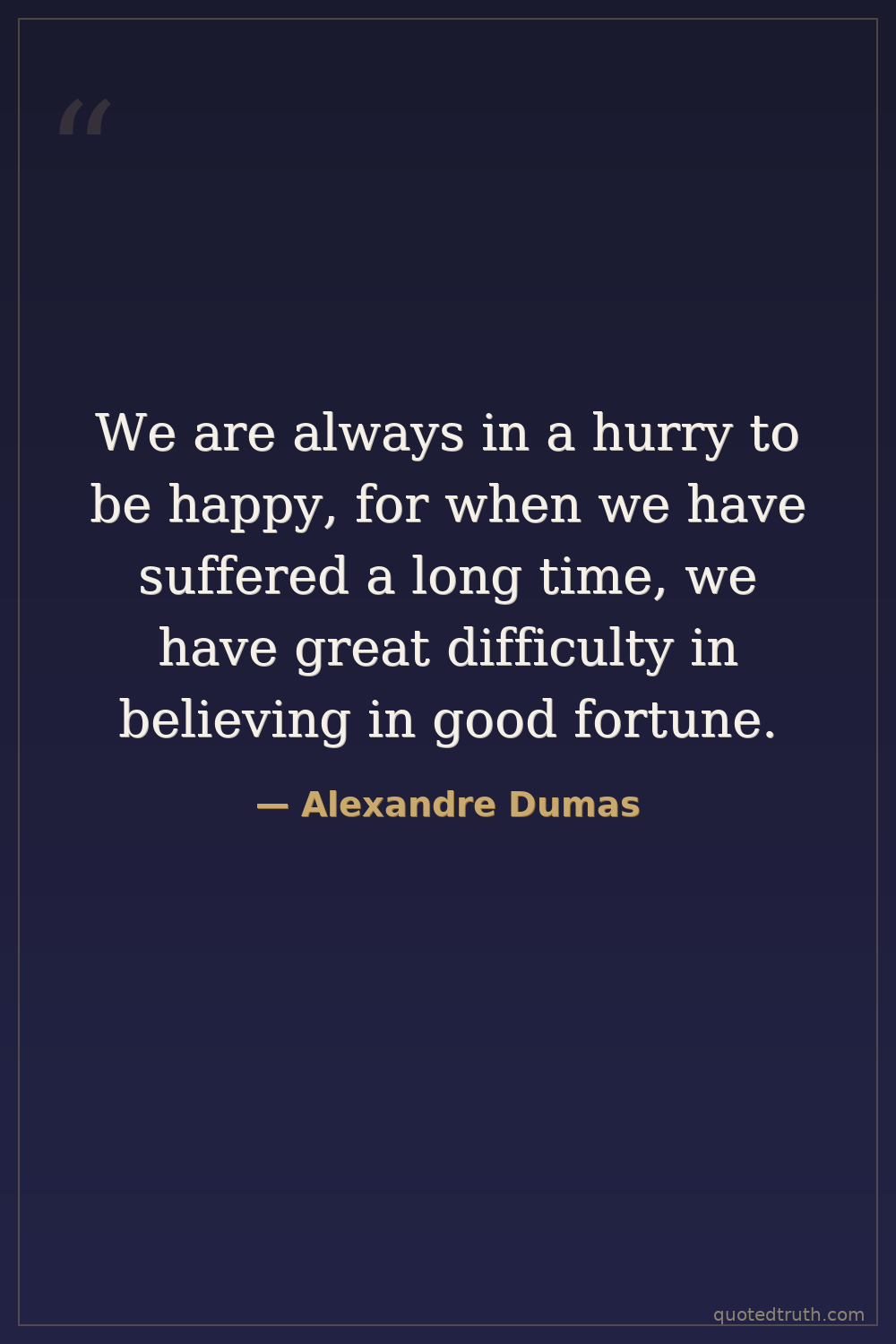 We are always in a hurry to be happy, for when we have suffered a long time, we have great difficulty in believing in good fortune.