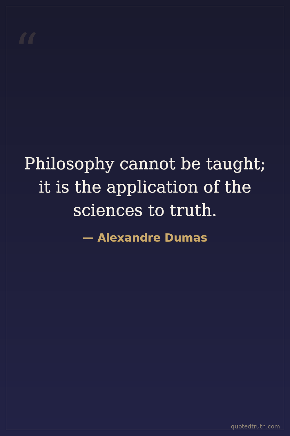 Philosophy cannot be taught; it is the application of the sciences to truth.