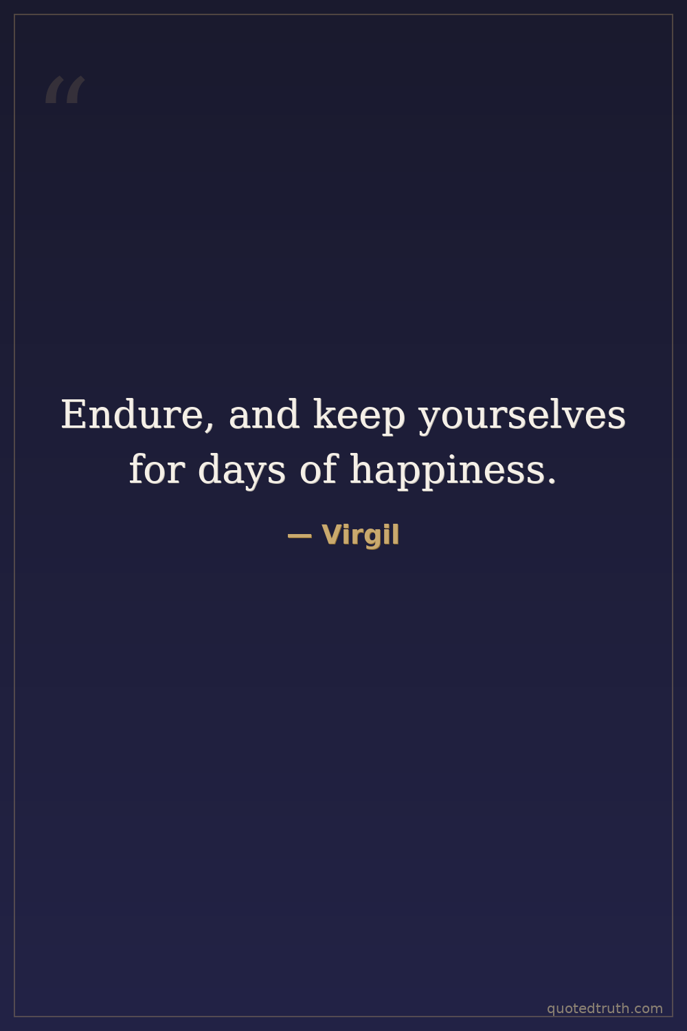 Endure, and keep yourselves for days of happiness.