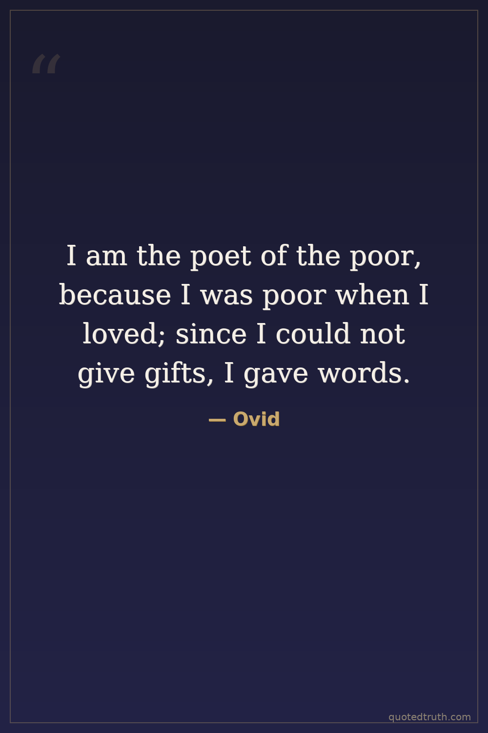 I am the poet of the poor, because I was poor when I loved; since I could not give gifts, I gave words.