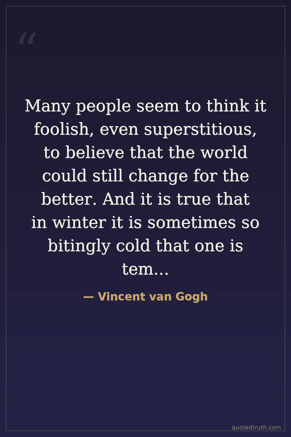 Many people seem to think it foolish, even superstitious, to believe that the world could still change for the better. And it is true that in winter it is sometimes so bitingly cold that one is tempted to say, 'What do I care if there is a summer; its warmth is no help to me now.' Yes, evil often seems to surpass good.