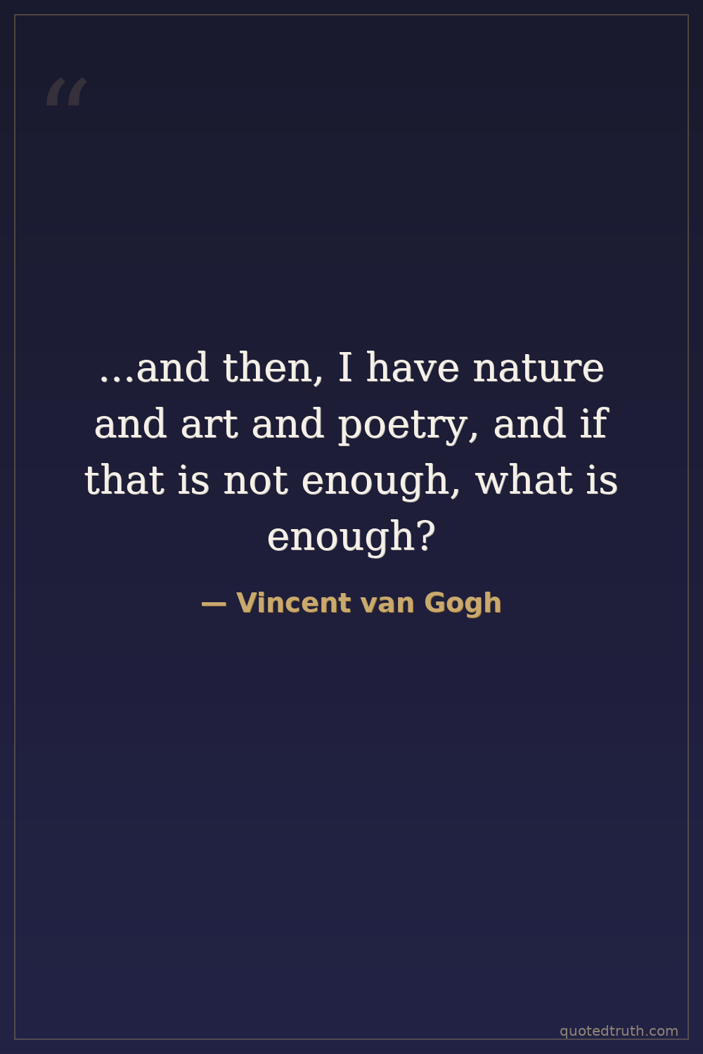 ...and then, I have nature and art and poetry, and if that is not enough, what is enough?