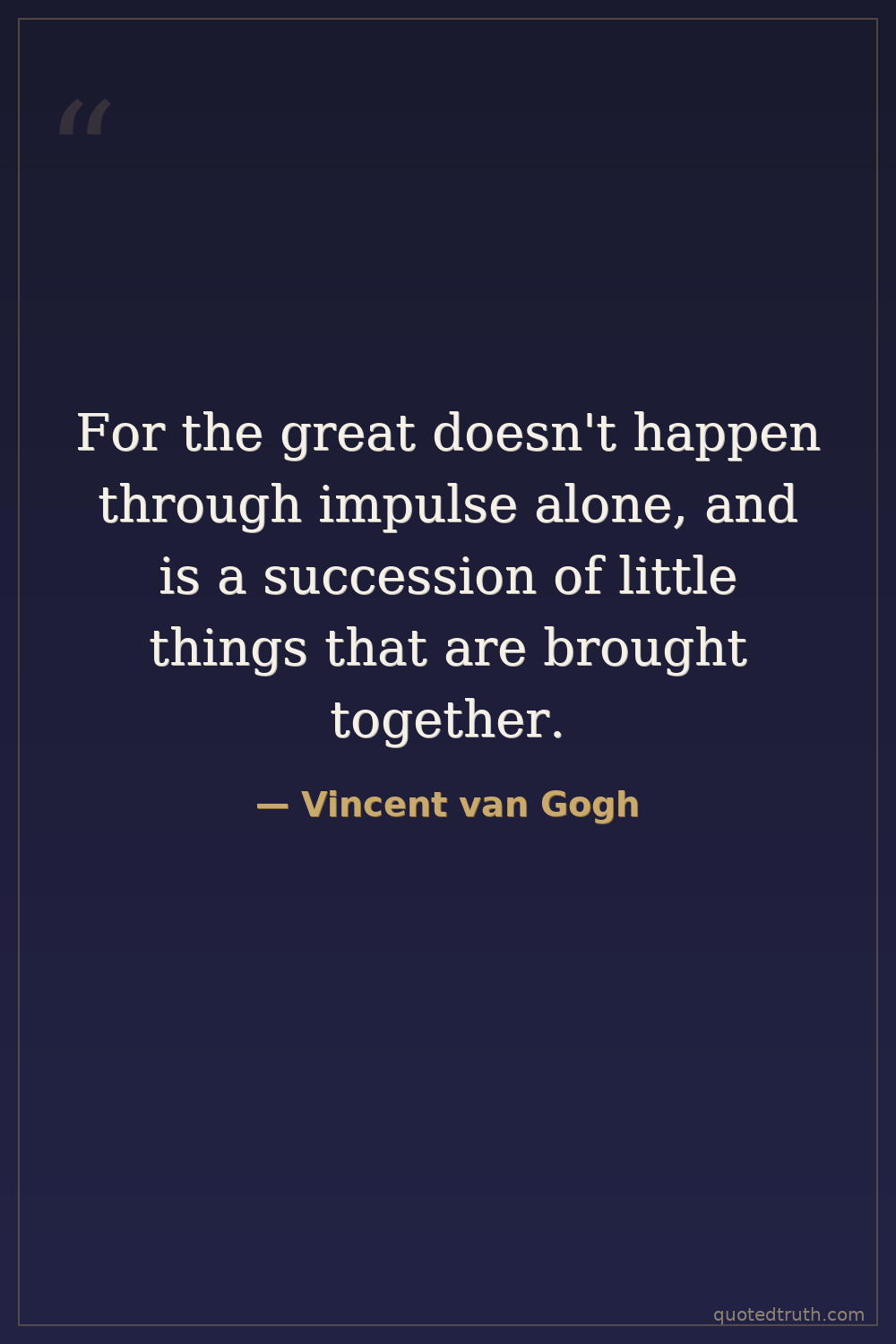 For the great doesn't happen through impulse alone, and is a succession of little things that are brought together.