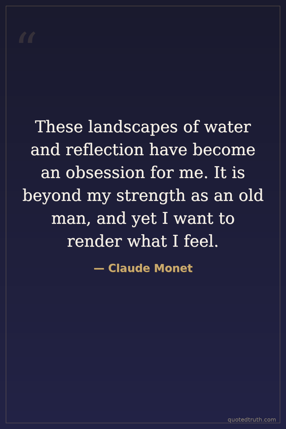 These landscapes of water and reflection have become an obsession for me. It is beyond my strength as an old man, and yet I want to render what I feel.