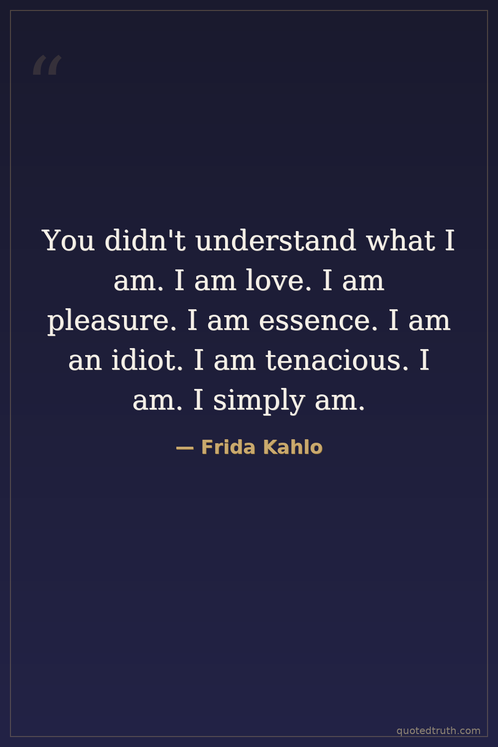 "I was born with an open wound, and colors pouring from it. Don't call me brave or a martyr; I'm just a woman who learned to love even in the midst of pain. I am a brush, I am a scream, I am broken fle…"