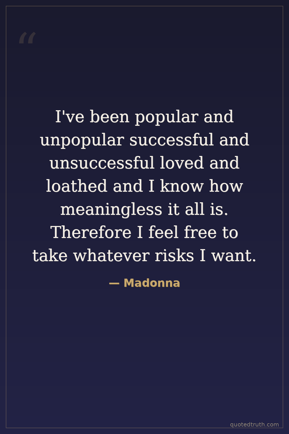 I've been popular and unpopular successful and unsuccessful loved and loathed and I know how meaningless it all is. Therefore I feel free to take whatever risks I want.