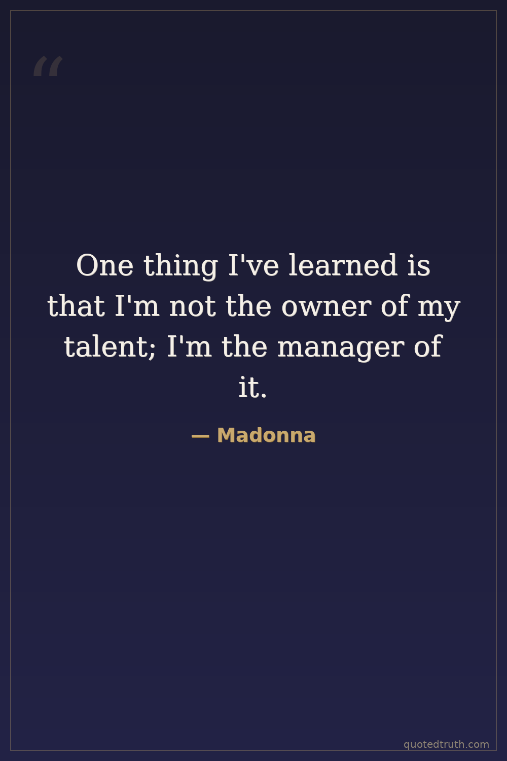 One thing I've learned is that I'm not the owner of my talent; I'm the manager of it.
