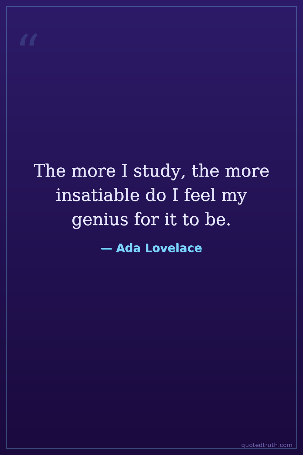 The more I study, the more insatiable do I feel my genius for it to be.
