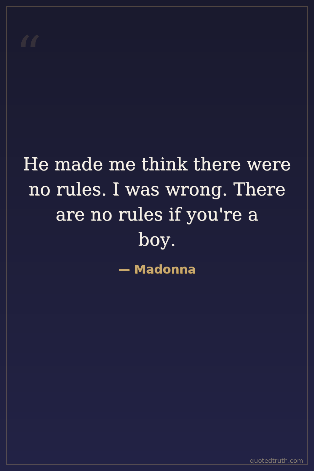 He made me think there were no rules. I was wrong. There are no rules if you're a boy.