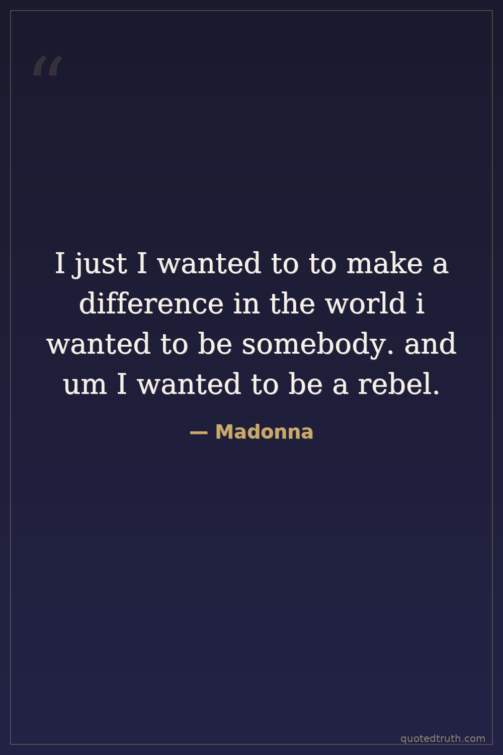 I just I wanted to to make a difference in the world i wanted to be somebody. and um I wanted to be a rebel.