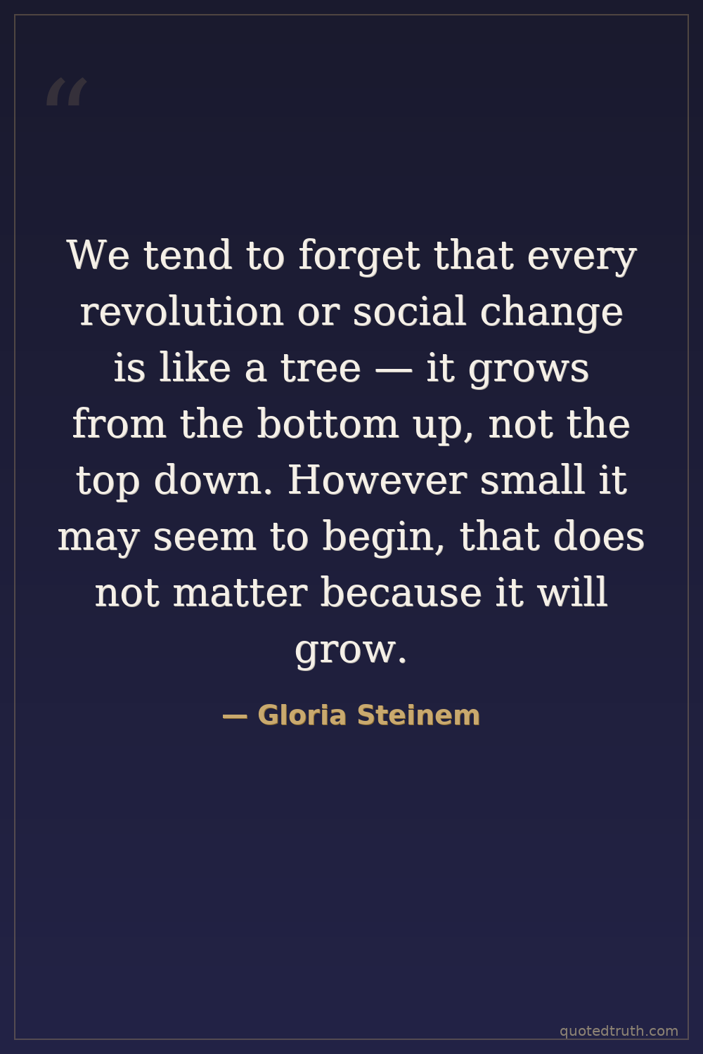 We tend to forget that every revolution or social change is like a tree — it grows from the bottom up, not the top down. However small it may seem to begin, that does not matter because it will grow.