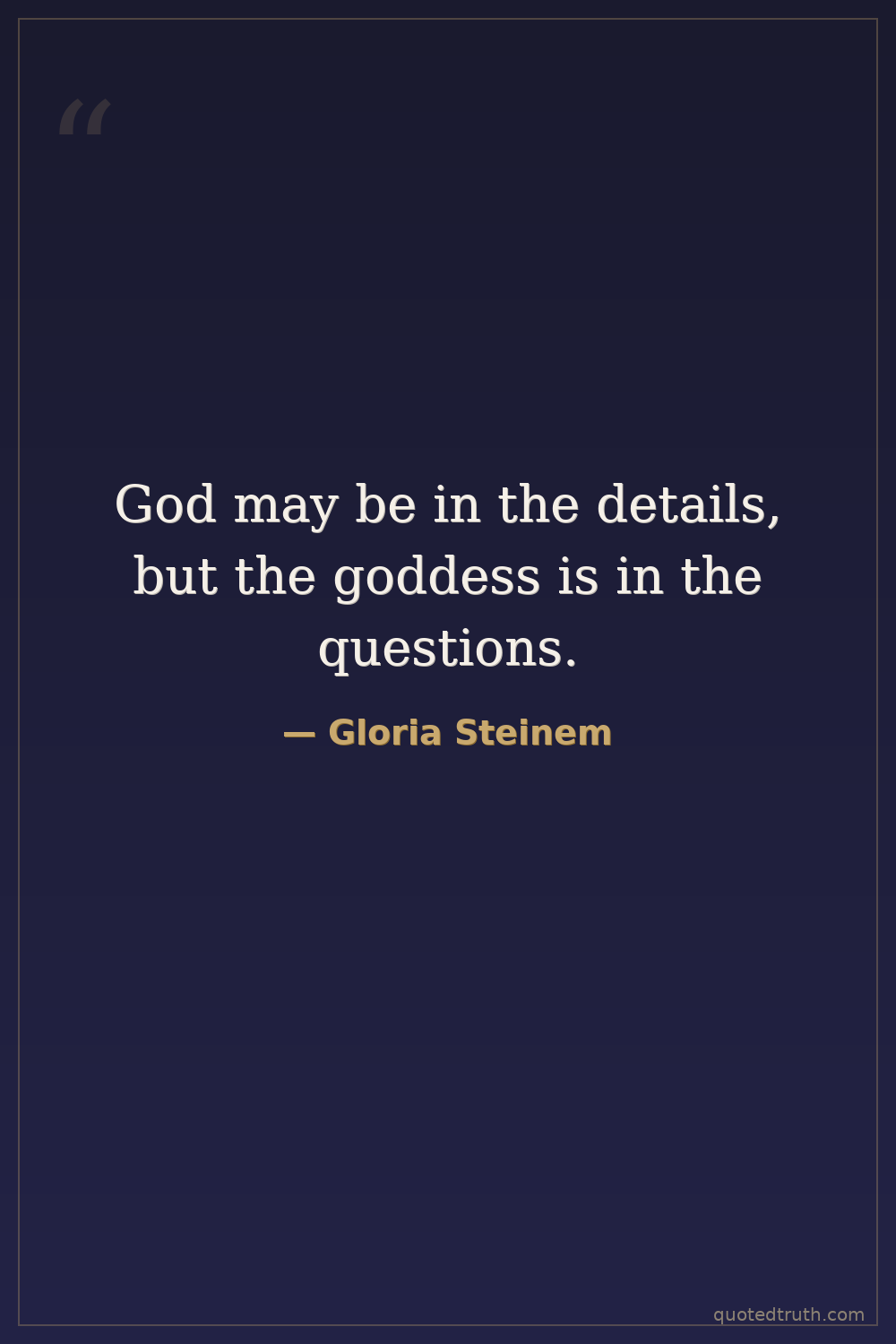 God may be in the details, but the goddess is in the questions.