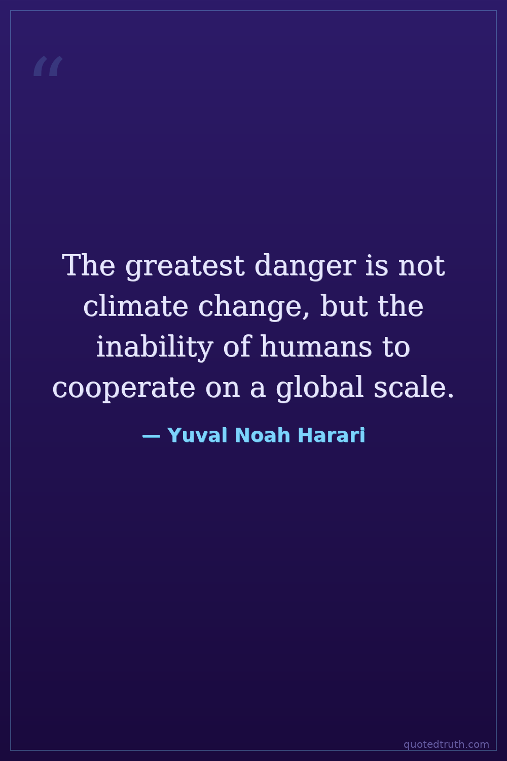 The greatest danger is not climate change, but the inability of humans to cooperate on a global scale.