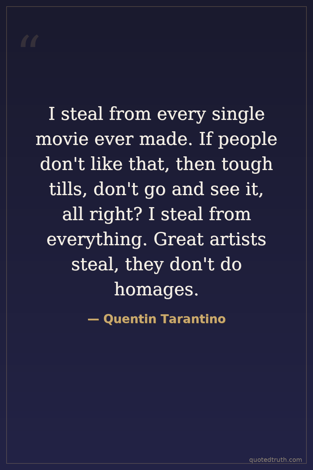 I steal from every single movie ever made. If people don't like that, then tough tills, don't go and see it, all right? I steal from everything. Great artists steal, they don't do homages.