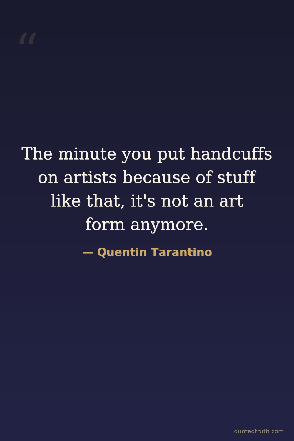 The minute you put handcuffs on artists because of stuff like that, it's not an art form anymore.