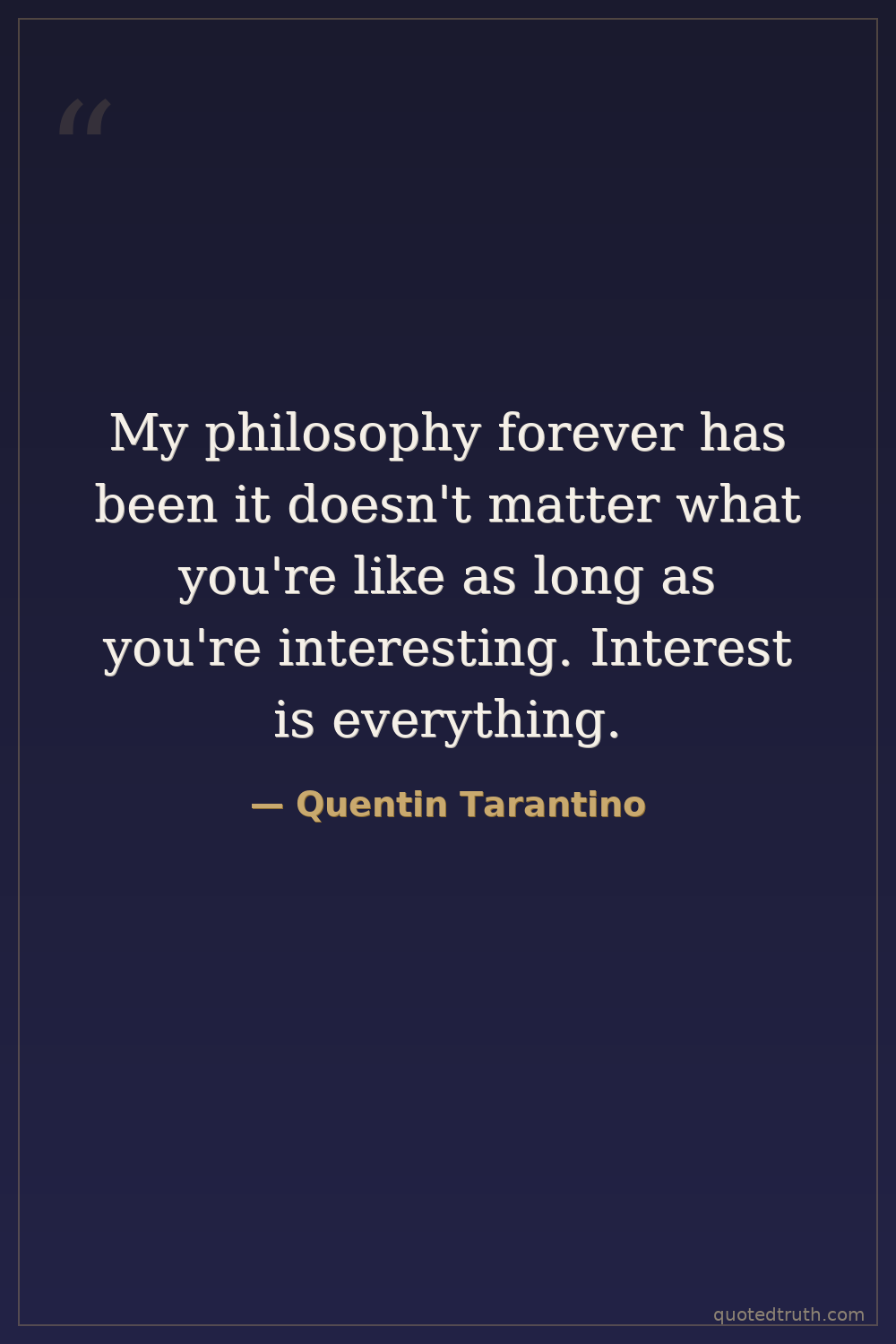 My philosophy forever has been it doesn't matter what you're like as long as you're interesting. Interest is everything.