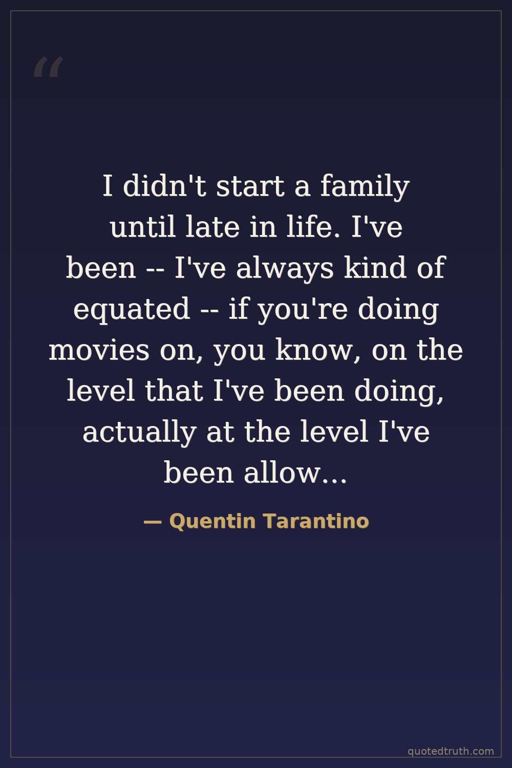 I didn't start a family until late in life. I've been -- I've always kind of equated -- if you're doing movies on, you know, on the level that I've been doing, actually at the level I've been allowed to do, it's -- I equate it to mountain climbing.