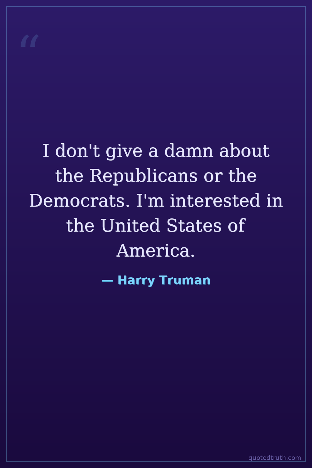 I don't give a damn about the Republicans or the Democrats. I'm interested in the United States of America.