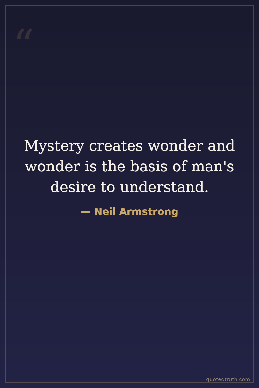 Mystery creates wonder and wonder is the basis of man's desire to understand.