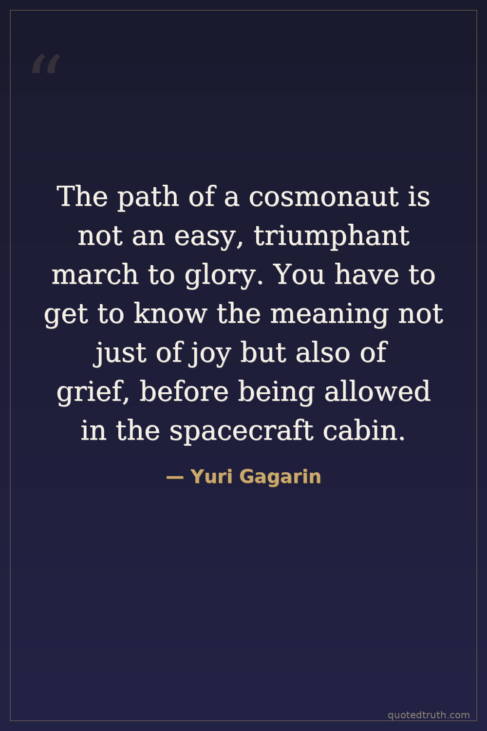 The path of a cosmonaut is not an easy, triumphant march to glory. You have to get to know the meaning not just of joy but also of grief, before being allowed in the spacecraft cabin.