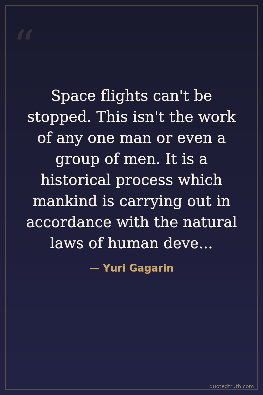 Space flights can't be stopped. This isn't the work of any one man or even a group of men. It is a historical process which mankind is carrying out in accordance with the natural laws of human development.