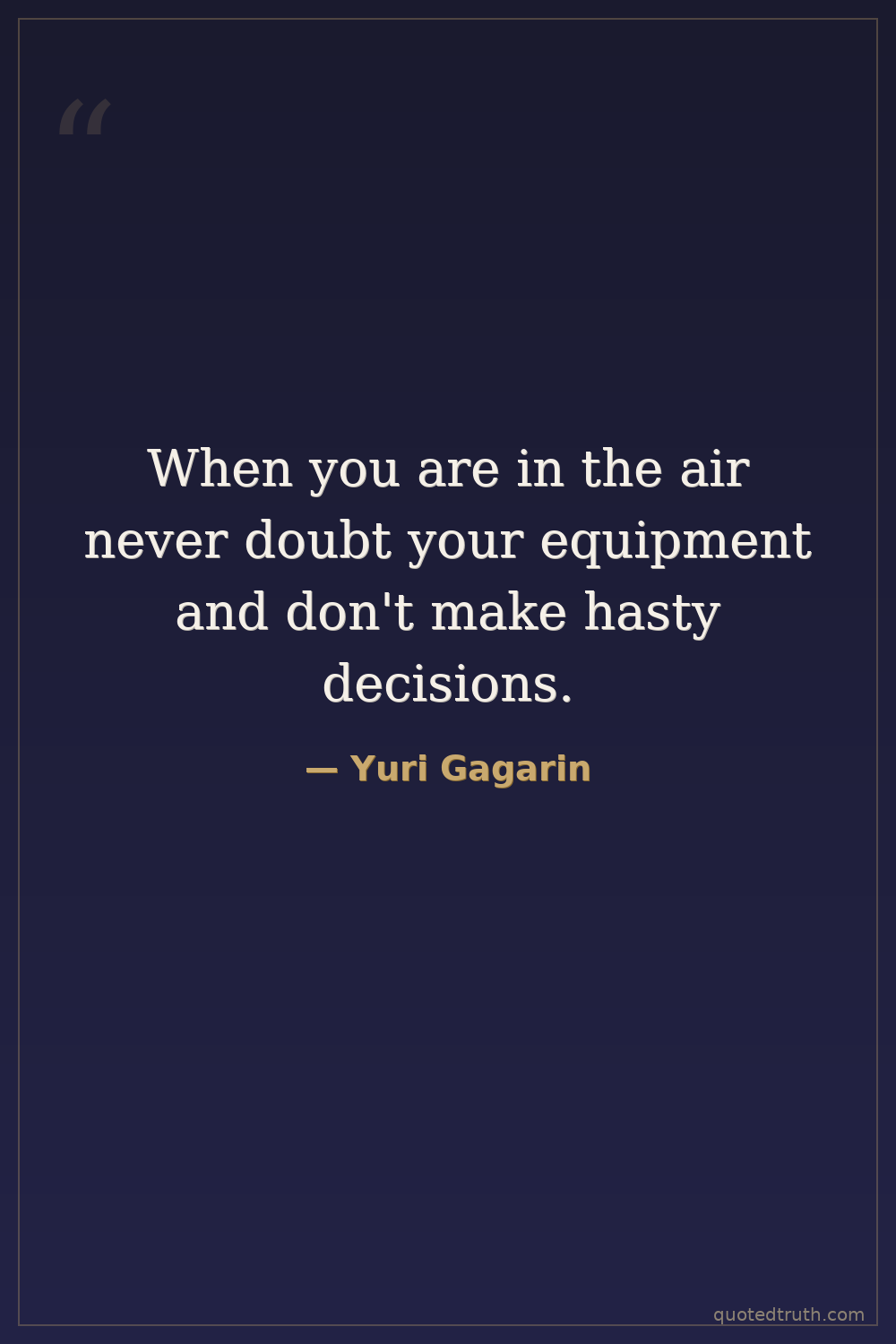 When you are in the air never doubt your equipment and don't make hasty decisions.